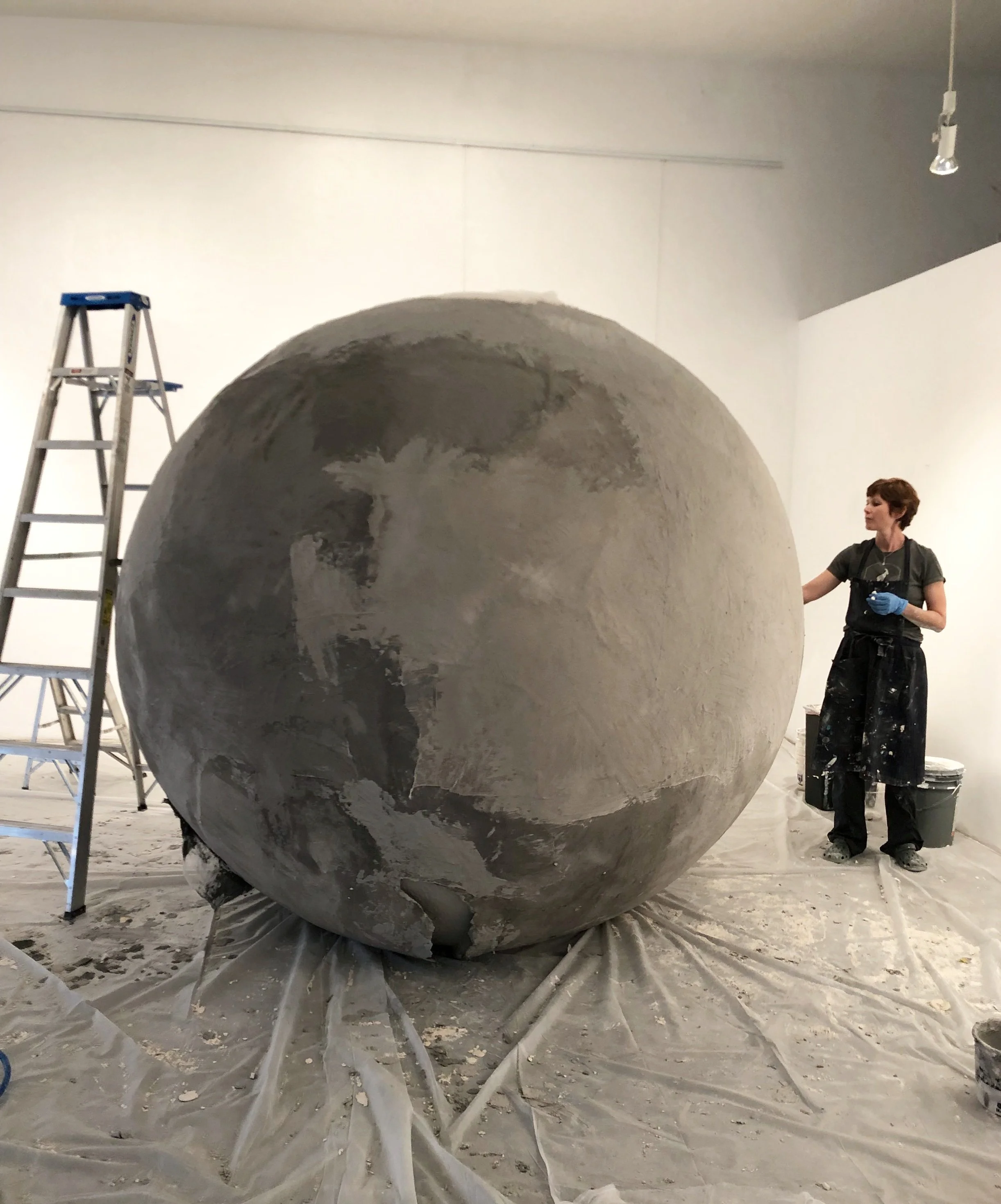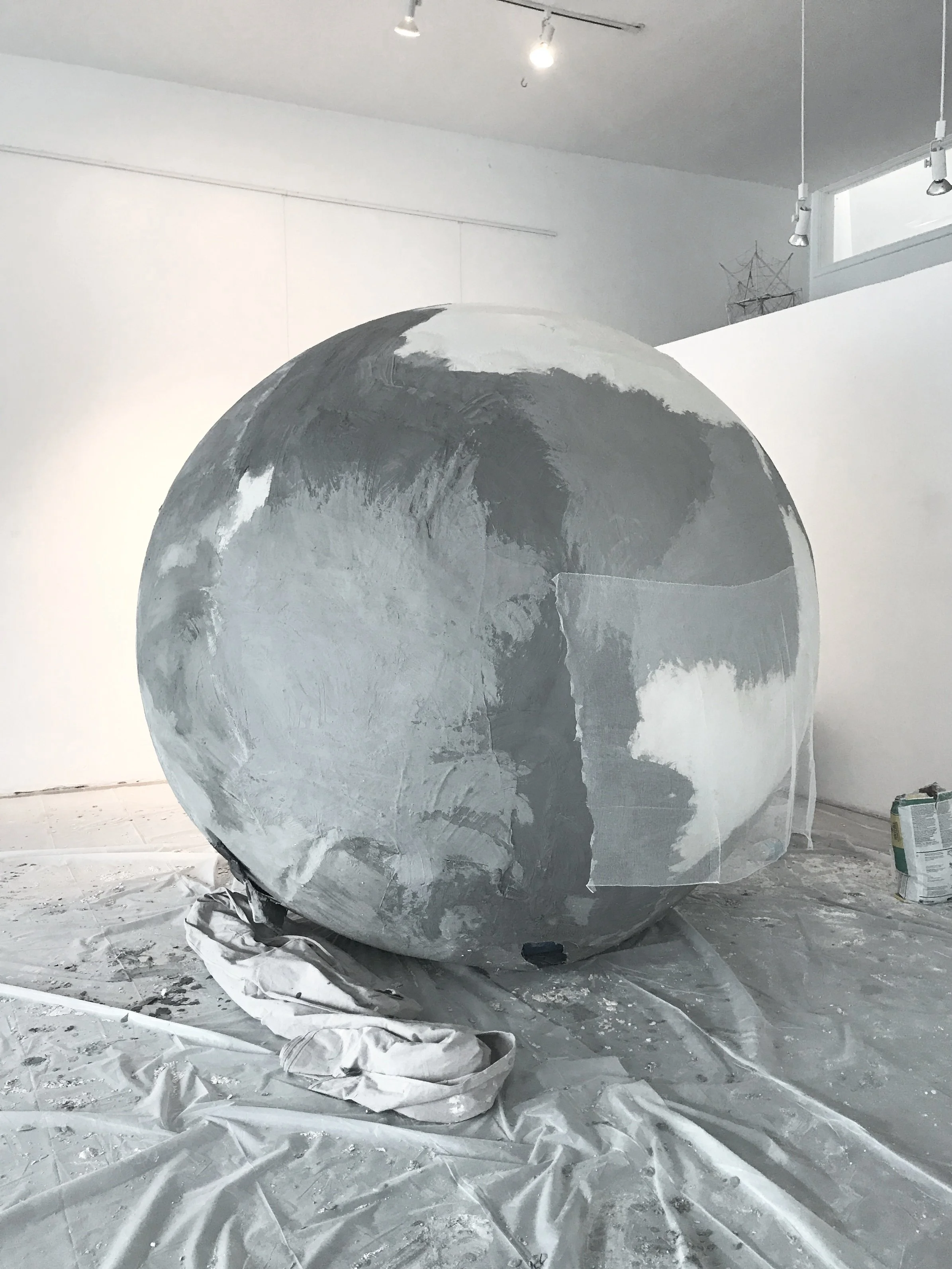 I had the opportunity to have the Hill Street Country Club/Linksoul LAB gallery space for a month to do some more experimental, process based work. I wanted to make something at a scale I couldn’t at home. I had been thinking about a giant presence as witness, and wanted to make that physical. As I layered cheesecloth and plaster on a giant inflatable ball, I thought about how we aren’t our bodies, but our bodies are ours. They are expressions of us, tools, a medium through which we experience the world and often a large part of our identities. We are also trapped in them and increasingly limited by them as we age. As I watch my daughter grow, and my parents age, I am increasingly aware of my own mortality - it is becoming a palpable presence, a kind of witness. This piece is about sitting with that solidity and gravity in physical form and on some level, accepting it. This common truth is larger than me, too big and unwieldy for me to control and somehow beautiful.